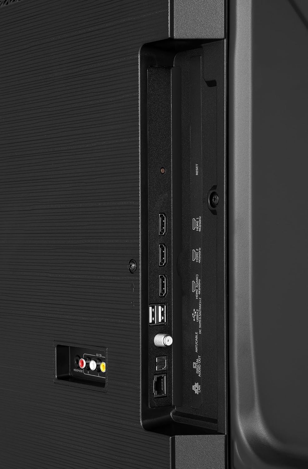 - Ports : 3 × HDMI (1 avec eARC), 2 × USB, entrée RF (antenne)